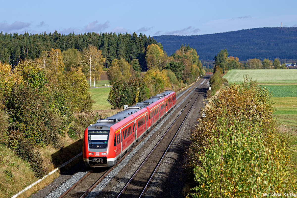 - Aufgrund der Elbtal-Umleiterverkehre war ich am 22.10. wiedermal etwas weiter nördlich unterwegs. Während Metrans die ganze Fotografenherde bei Neudes zum Narren hielt, kam zumindest das 612-Dreierpack bei Sonne.