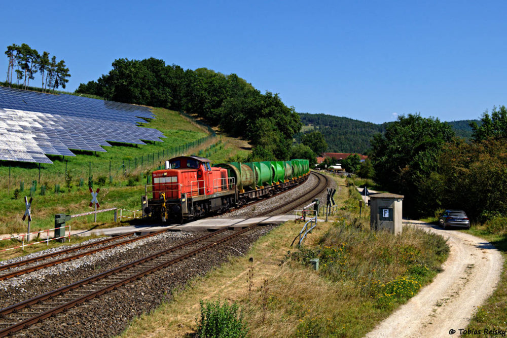 - Zuverlässige Güterzugleistung am Abend ist im Sommer immer der Müllzug von Regensburg nach Schwandorf, der hier kurz vor dem Ziel erwischt werden konnte.