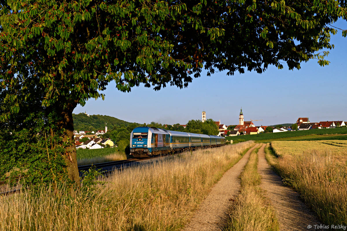 - Jetzt im Winter kaum vorstellbar: Am 29.06. war es 20.05 Uhr, als 223 064 mit ihrer Überführung den Kirchenblick Sulzbach-Rosenberg und die drei wartenden Fotografen passierte.