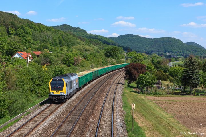 Am 17.05.2020 war mal wieder der Mertz-Sandzug von Kayna nach Stuttgart angekündigt und und bei Hof gegen Mittag auf seiner Fahrt gen Südwesten gesichtet worden. Da das Wetter halbwegs brauchbar war ging es geschwind nach Hersbruck auf den dortigen Steg an der Ostseite des Bahnhofs. Damit war dann dieser sonntägliche Weiterlesen