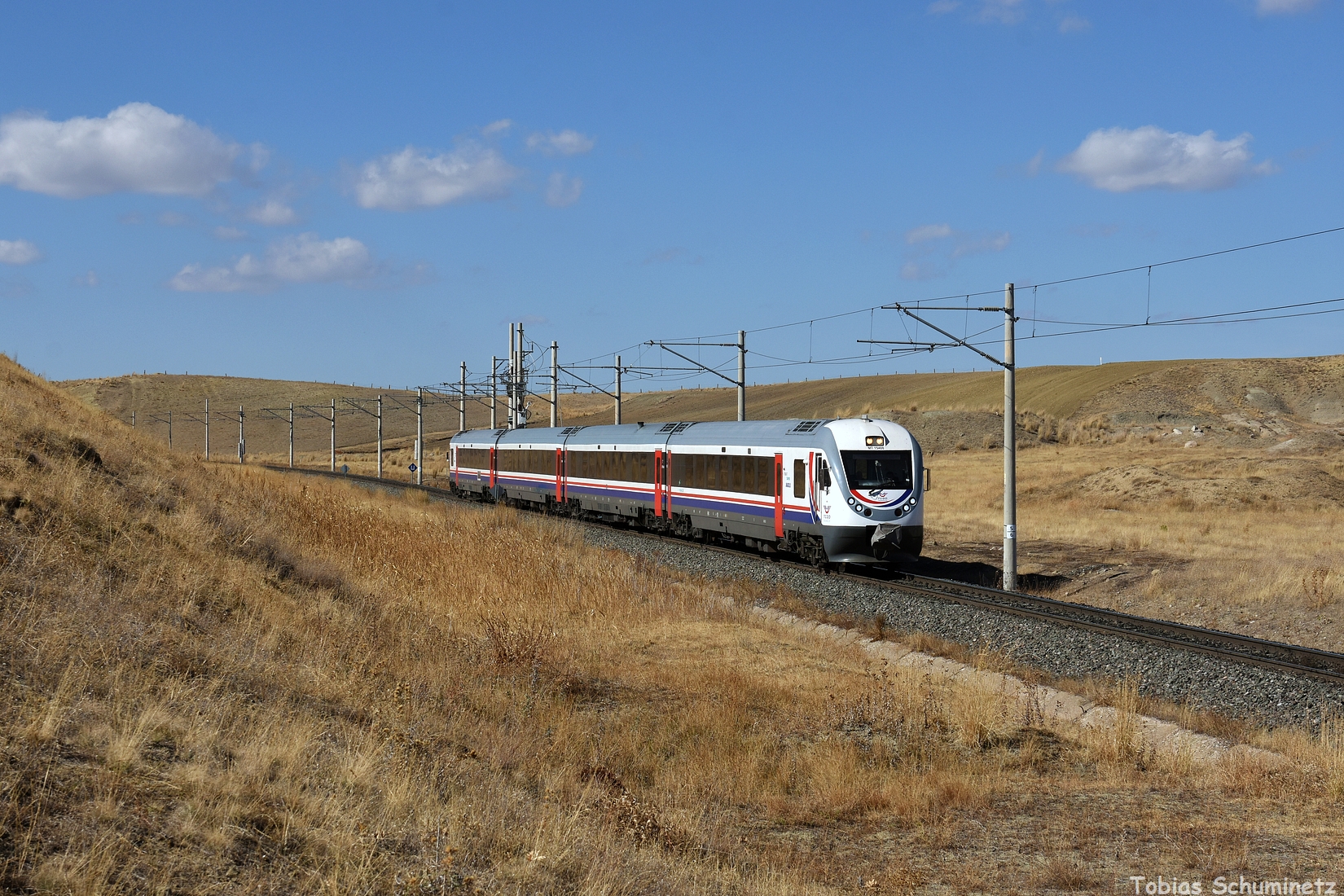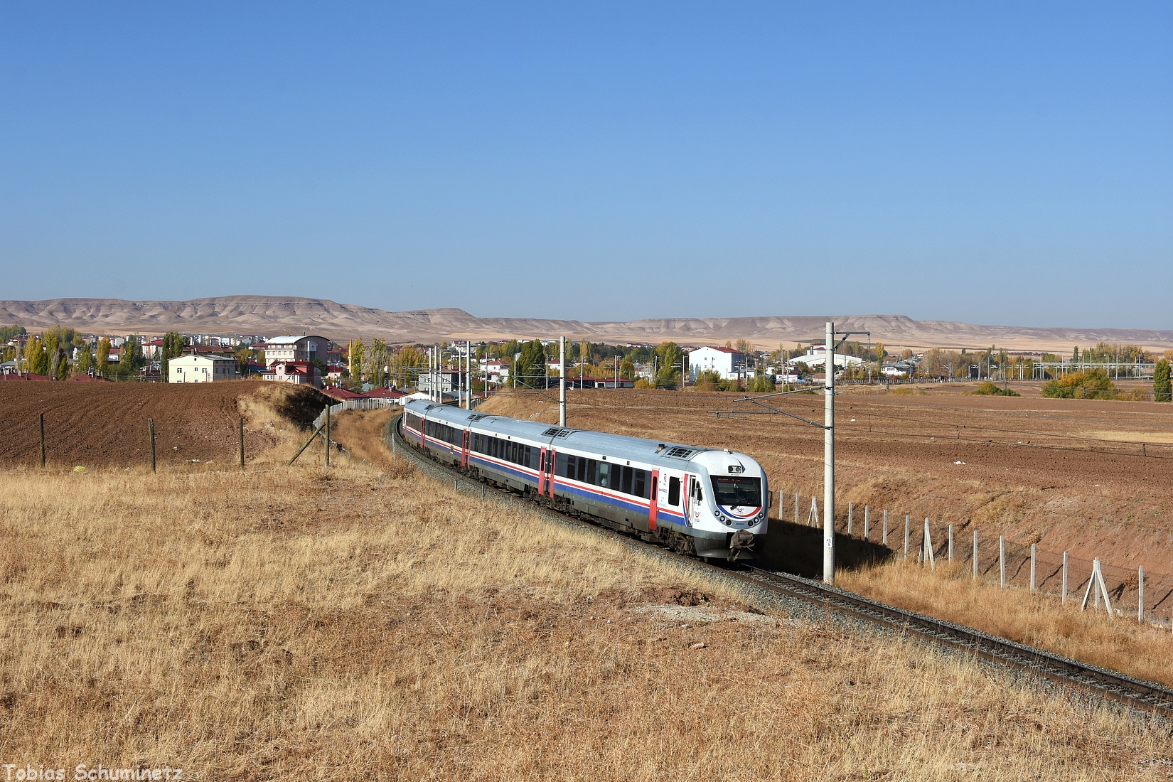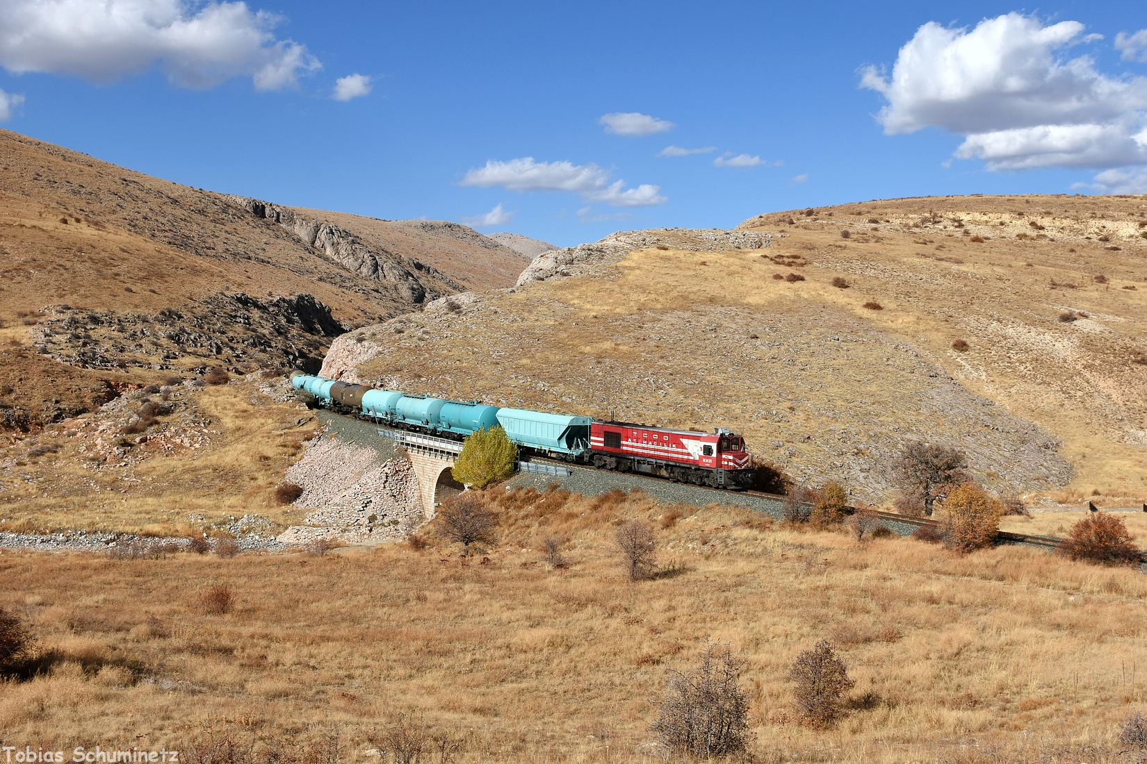 Bei Demiriz gab es noch eine Stelle wo das Licht für die DE24 mit dem Kesselzug passen würde. Doch vorher kam aus der anderen Richtung erst noch HB83503 von Körfez in Richtung Ankara vorbei.