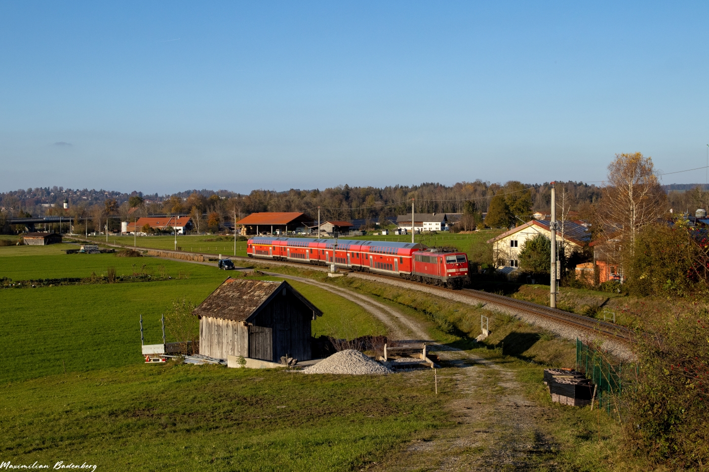 Zum Abschluss noch ein Wunschmotiv. Für dieses Bild von 111 058 war ich fast einen ganzen Tag unterwegs. Einmal quer durch Bayern zu einem der südlichsten Punkte des Bundeslandes. Bei Ohlstadt klickte am 30.10 der Auslöser.