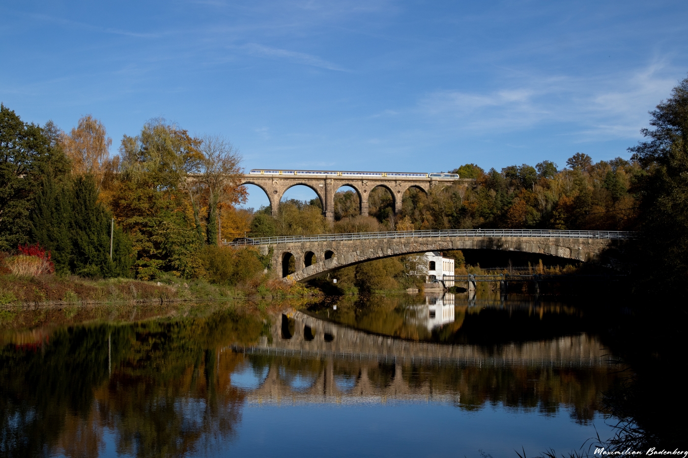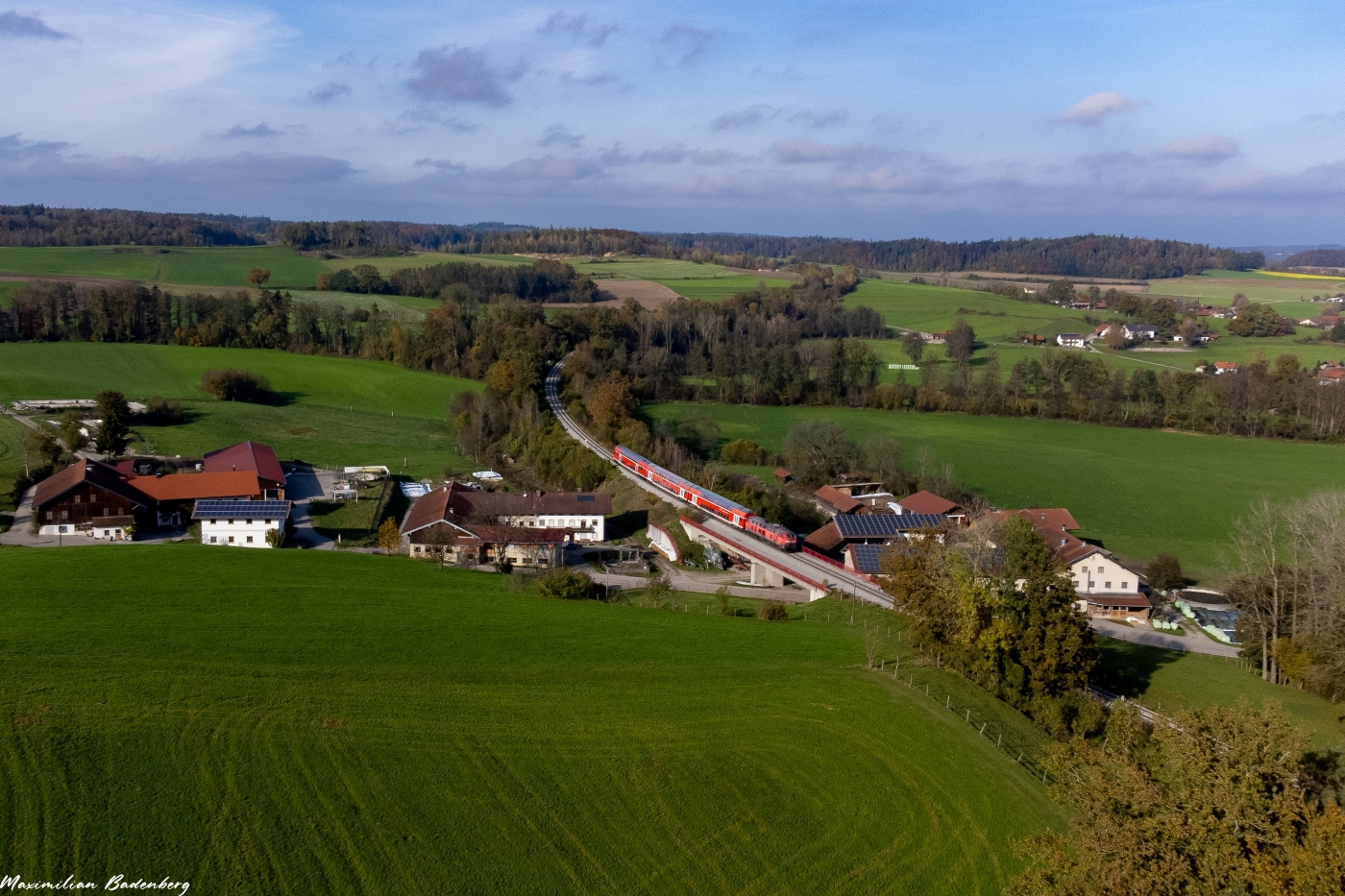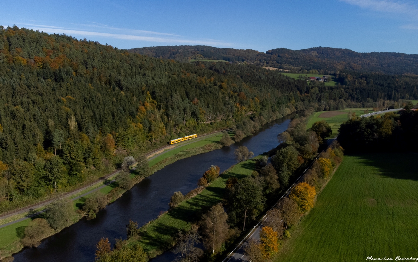 Ein unbekanntes VT 650 Doppel der Oberpfalzbahn war am 16.10 durchs Regental unterwegs. Aufgenommen mit der Drohne.