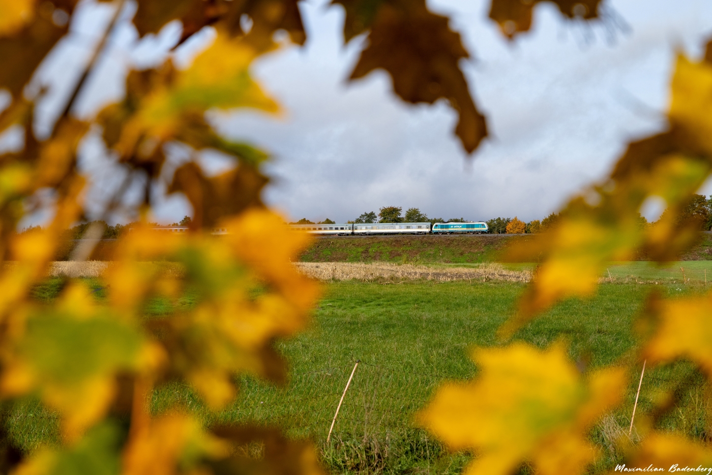 Traumatisch war der Abend des 29. Oktober. Nach einer 4 1/2 Stündigen Bahnfahrt nach Würzburg, klappte das Bild des IC „Königsee“ von einem der strahlenden Weinberge um ein Haar nicht mehr. Stellvertretend muss ich deshalb dieses 408er-Doppel zeigen. Ein paar Tage später versuchte ich mein Glück erneut und auch hier ohne Erfolg.