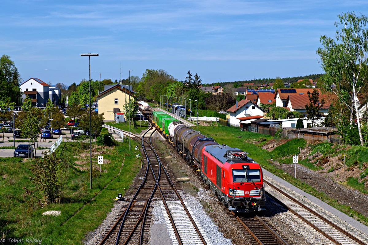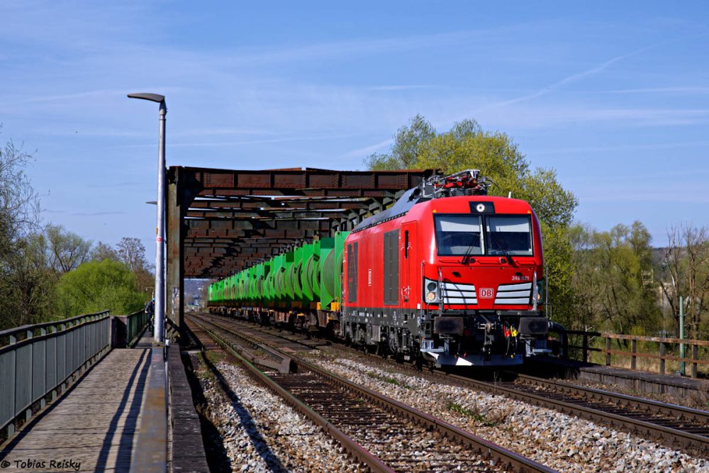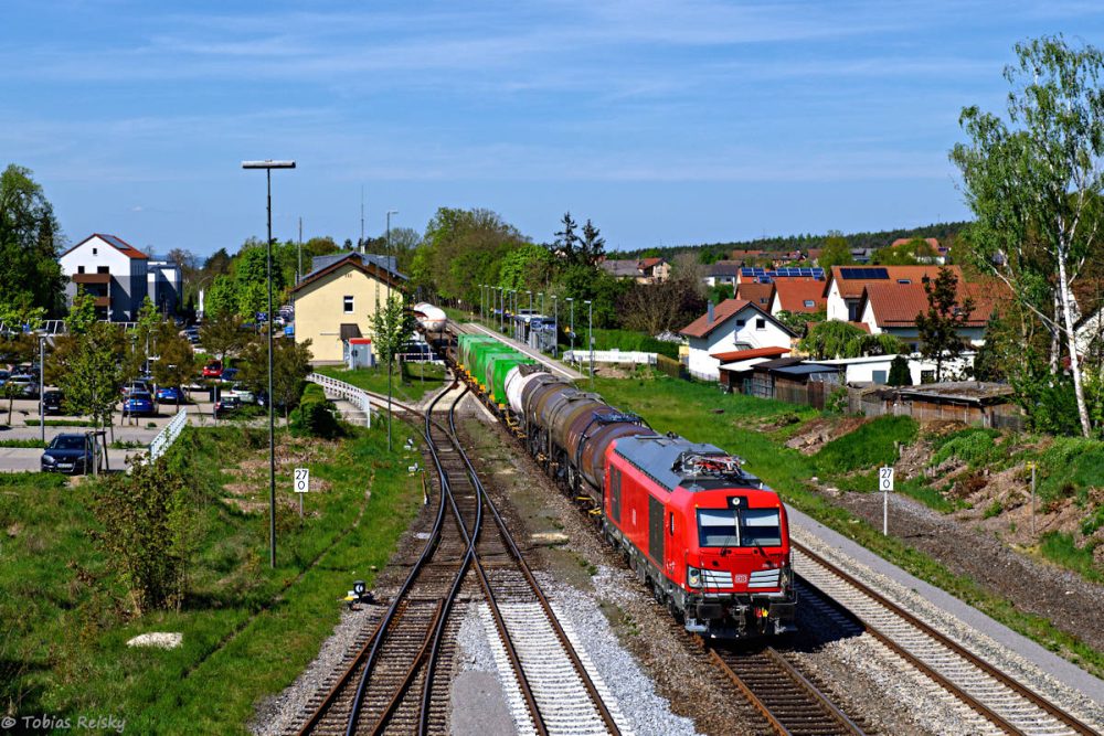- Am 11.04. war der Regensburger Müllzug ausnahmsweise mit einem Vectron DM light bespannt, was ich mir natürlich nicht entgehen lassen wollte. Zwischen Regensburg-Walhallastraße und der Abzweigstelle Hafenbrücke wird planmäßig im Gegengleis gefahren.
