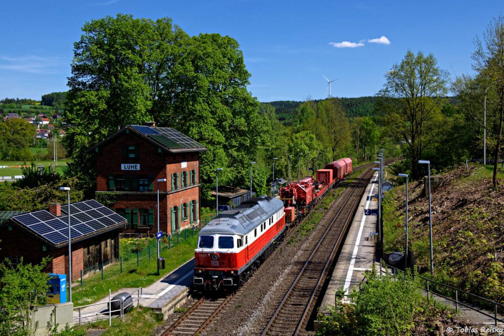 - Aufgrund eines Bahnübergangsunfalls in Klardorf mit Entgleisung des betroffenen 612 war am 30.04. der Kranzug in der Oberpfalz. Das Bild zeigt nach getaner Arbeit die Rückfahrt in Luhe.