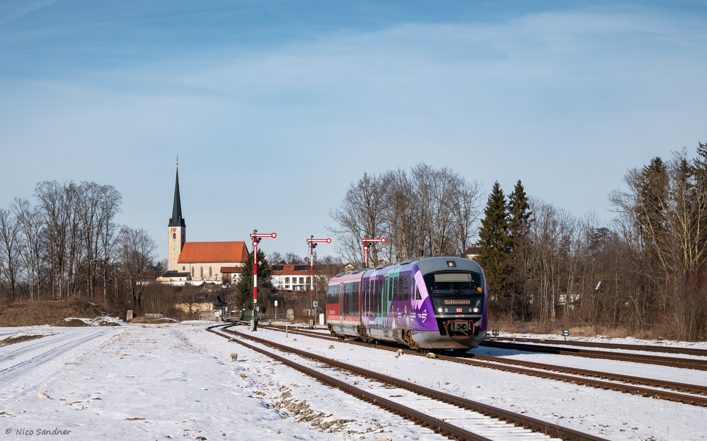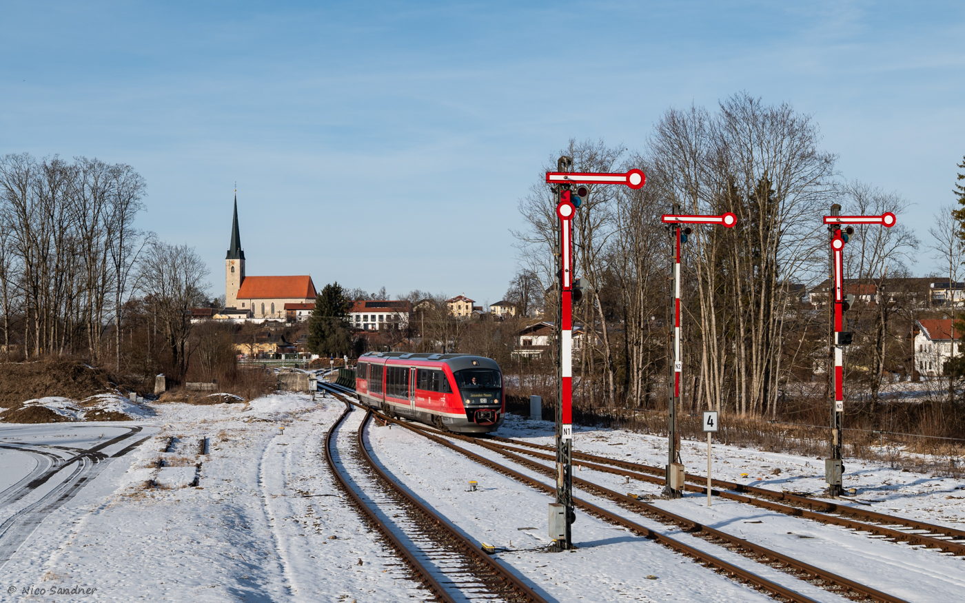 - Zum Abschluss noch ein Bild aus Stein an der Traun – 642 130 auf dem Weg nach Traunreuth.