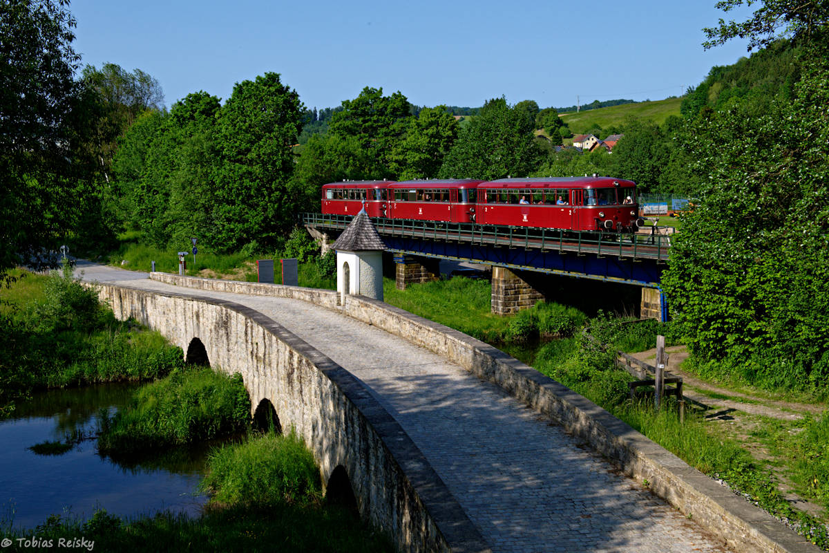 Zu Saisonbeginn machte die Ilztalbahn Schlagzeilen, daß 2023 ein neu angeschaffter 628 fahren würde – der aber nicht rechtzeitig zum Betriebsstart zur Verfügung stehen sollte. Ersatzweise halfen an Christi Himmelfahrt wir mit dem VT07 aus – was mich dann aber gleich zu einer Tour am Wochenende eine Woche später animierte, um den Plan- und Nostalgieverkehr der Ilztalbahn zu fotografieren: