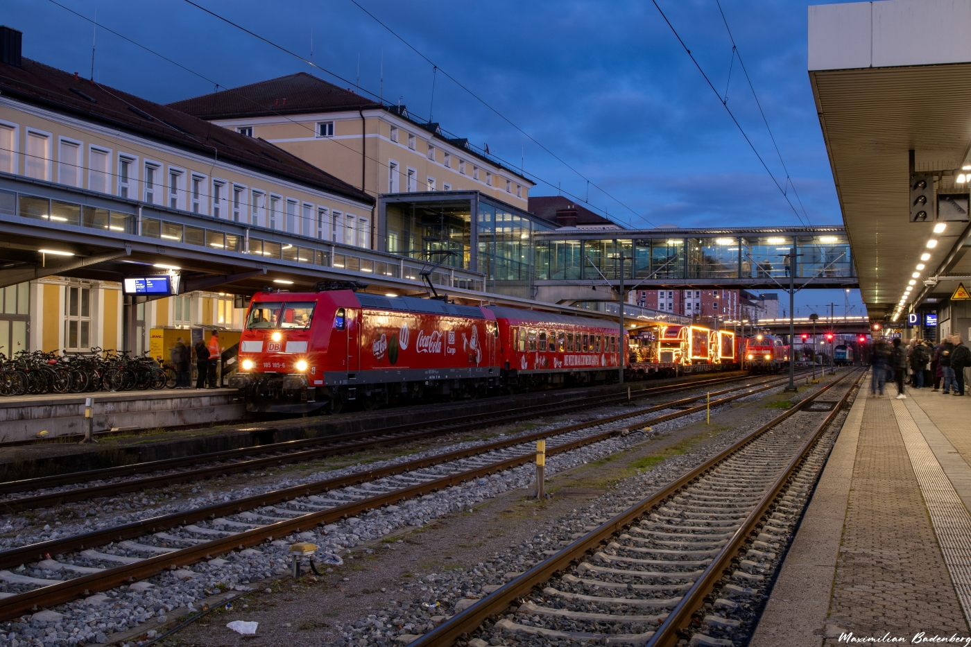 Hohen Besuch gab es am 04.12 in Regensburg. Der „CocaCola-Weihnachtszug“, welcher seit letztem Jahr in Kooperation mit DB Cargo durch Deutschland fährt, stand von 14:00 Uhr – 20:00 Uhr auf Gleis 1 am Hauptbahnhof. Bespannt wurde er von zwei Traxx I-Maschinen.