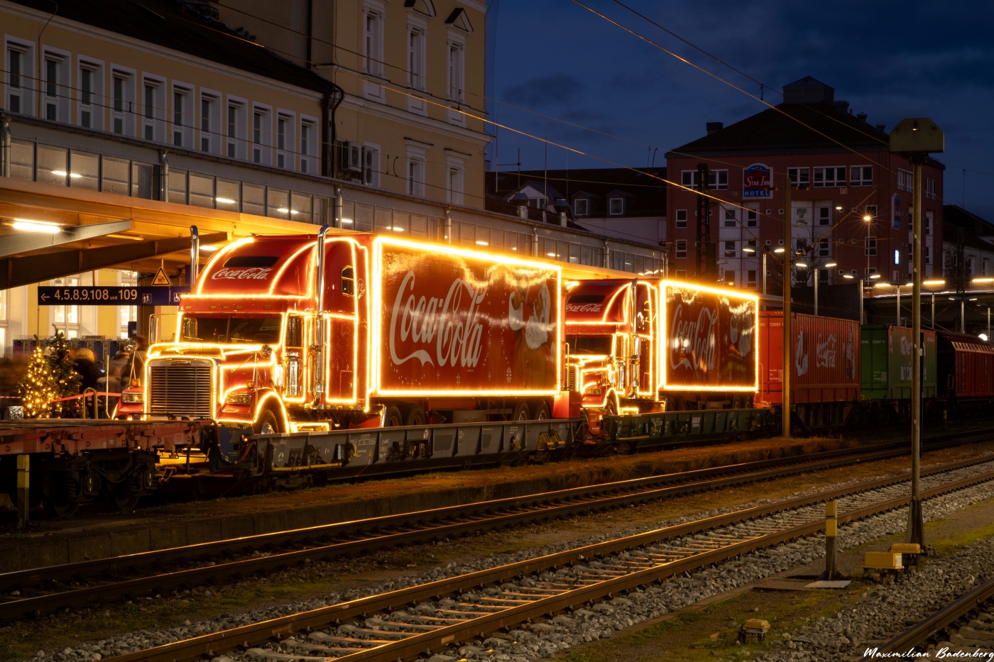 Hohen Besuch gab es am 04.12 in Regensburg. Der „CocaCola-Weihnachtszug“, welcher seit letztem Jahr in Kooperation mit DB Cargo durch Deutschland fährt, stand von 14:00 Uhr – 20:00 Uhr auf Gleis 1 am Hauptbahnhof. Bespannt wurde er von zwei Traxx I-Maschinen.