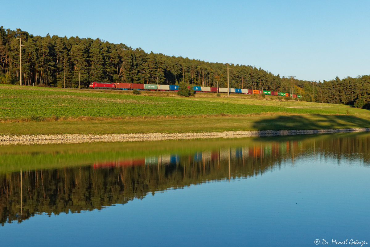 Am 16.10.2021 war ich bei herrlichem Herbstwetter auf dem Nachhauseweg von der Mainschleifenbahn und stattete der Strecke Nürnberg-Würzburg am Galgenweiher bei Oberstrahlbach einen Besuch ab, wo dann auch gleich ein „Mops“ als RE des Weges kam.