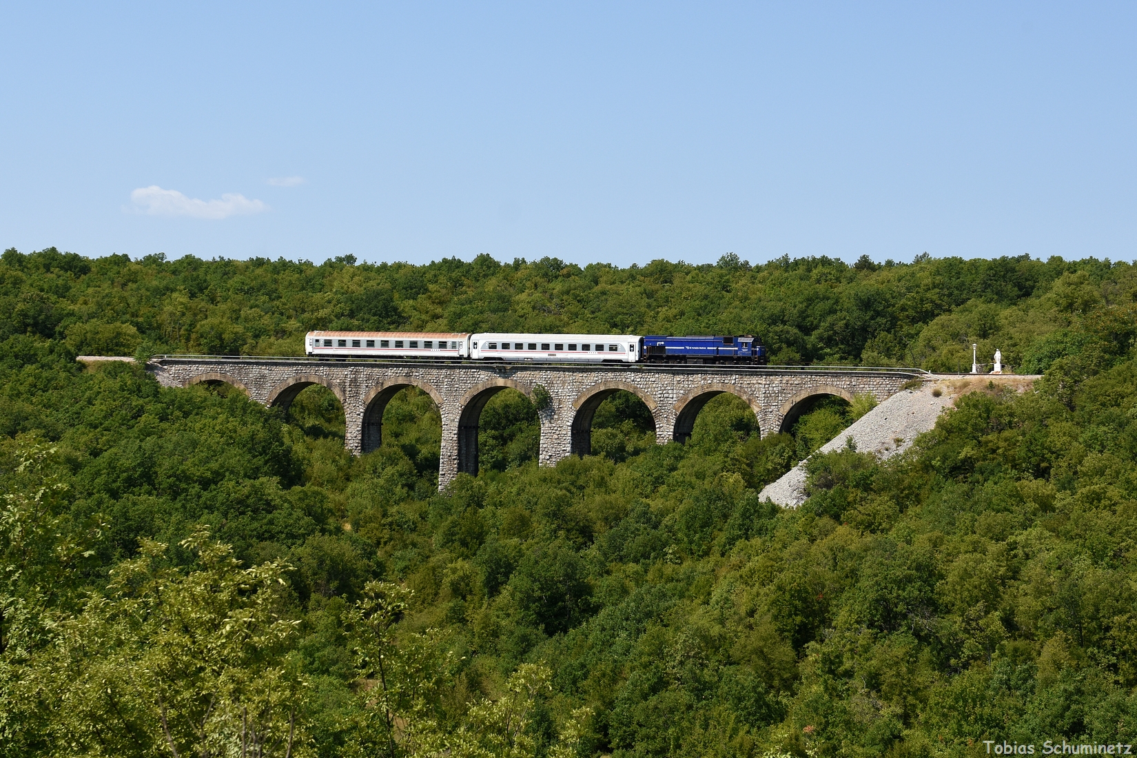 Nun wollten wir die Verfolgung auf die Steinbogenbrücke nochmals probieren. Der Regiojet fuhr heute leider wieder nicht nach Split, Grund war ein schwerer Güterzugunfall bei Koprivnica, sodass er eine Umleitung fahren musste und daher die Zeit nicht reichen würde in Split die Fahrgäste zu wechseln und pünktlich zurückzufahren.