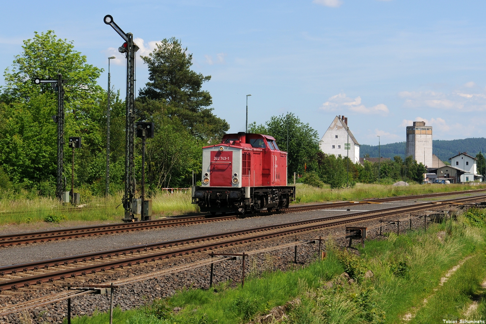 Im Block dahinter folgte eine weitere Ost V100 als Lokzug. 203 743 der RIS auf dem Weg in den Süden.
